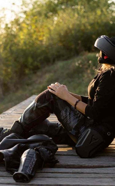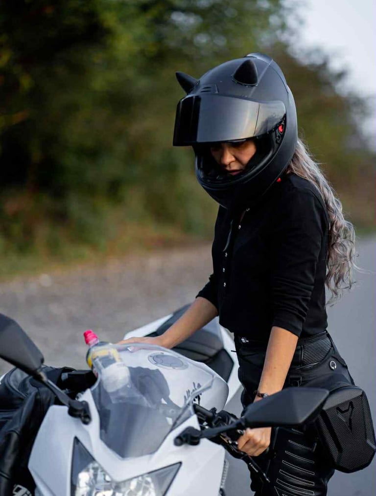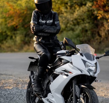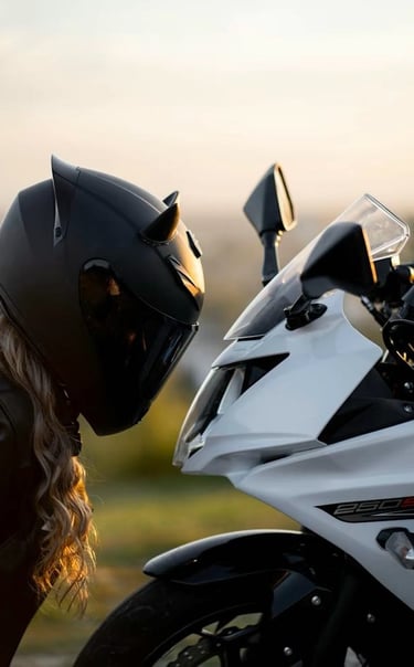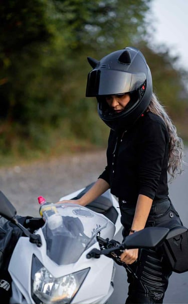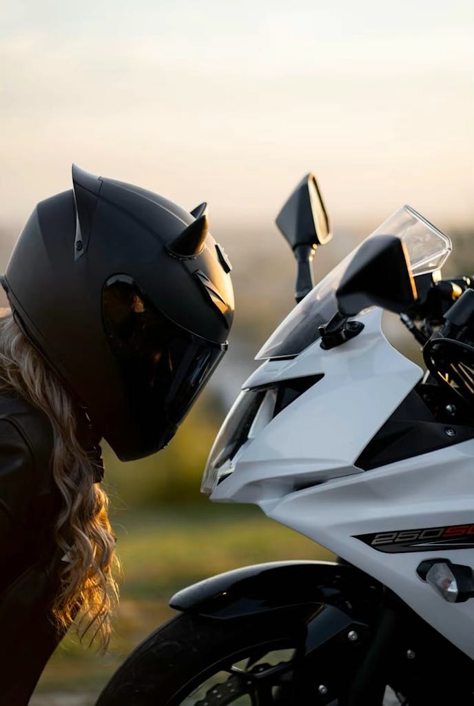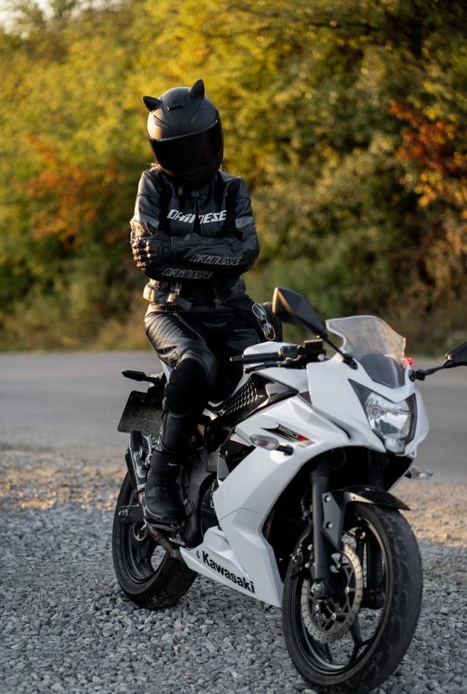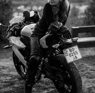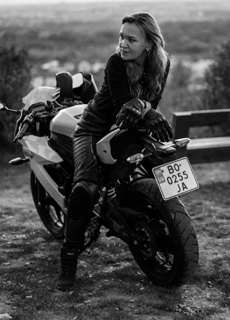 Every seam in Tetiana’s gear tells a tale—of high velocity, fierce independence, and a touch of mystique. Her presence on the motorcycle electrifies the frame, like a thunderstorm stitched in leather. Classic, rebellious, unforgettable.